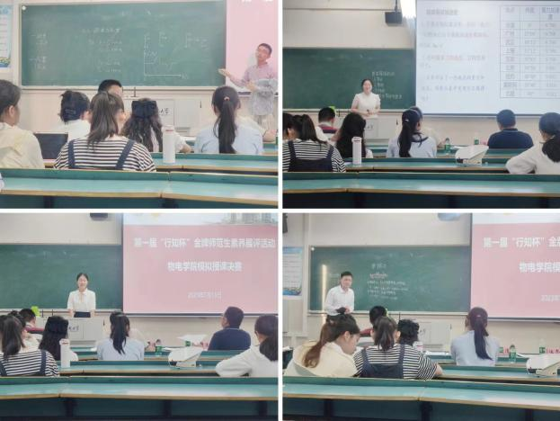 本次比赛分为手写教案展评、模拟授课、优秀板书展评、主题演讲四个环节。参赛选手们精心准备、不断打磨,每一份条理清晰、书写工整的板书和教案,每一节精心设计、声情并茂的模拟授课,每一场激动人心的教师梦演讲,都展现出物电学子在本次暑期小学期实践中的丰富收获与深刻体会。比赛现场气氛热烈,以赛促教,赛中互鉴,展现了物电学子的风采。