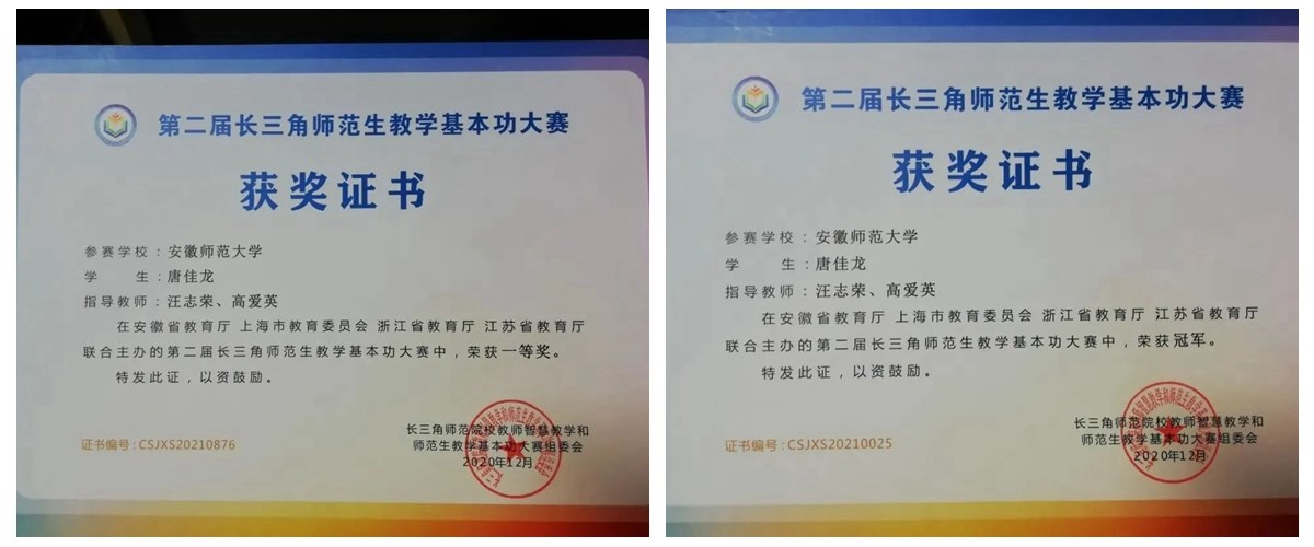 第二届长三角教学基本功大赛 物理学专业唐佳龙荣获冠军、一等奖