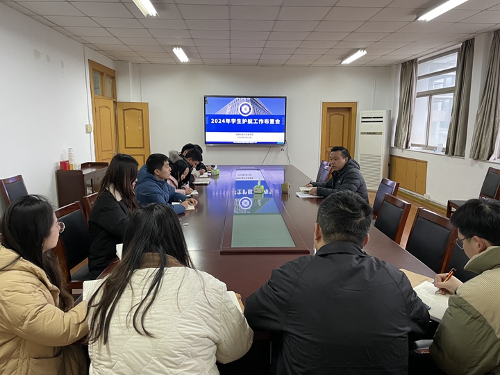在学苑南楼6号楼会议室召开2024年学生护航工作布置会。院党委副书记黄友生主持会议,学院全体专兼职辅导员参会。