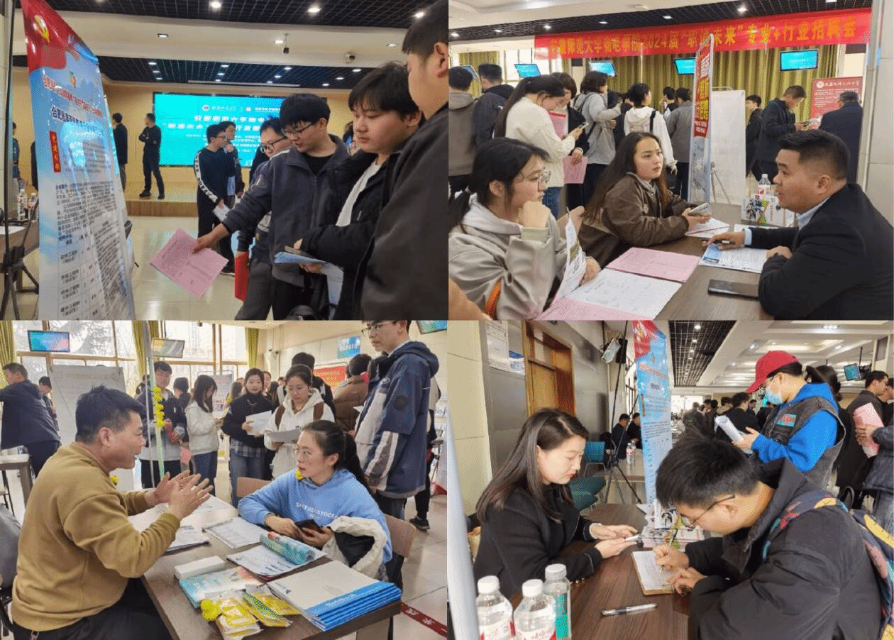 在大学生活动中心二楼招聘大厅举办2024年“职通未来”专业+行业春季专场招聘会,六十余家用人单位前来招聘,提供岗位千余个。