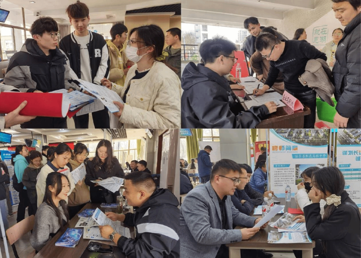 学校招生就业处、合肥经济技术开发区组织人事局、合肥经济技术开发区人力资源中心、芜湖经济开发区、化材、地旅和物电等学院负责同志及相关专业辅导员深入招聘会现场,与毕业生及用人单位洽谈交流,了解供需所求,开展就业推介及指导。