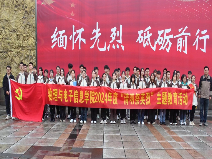 活动中,全体师生排着整齐的队伍,怀着无比崇敬的心情来到烈士纪念碑前,对为保卫家乡、保卫祖国而献出青春热血的革命英烈表示沉痛的哀悼。学生代表向革命烈士敬献鲜花并整理挽联,全体参加人员低头静立并默哀,以此寄托哀思,歌颂和缅怀革命先烈的无私奉献精神。聂翔同学带领全体成员重温入团誓词。“理响物电”宣讲团成员朱雯同学以“心至苍穹外,目尽山河远”为题展开宣讲,希望各位青年学子能自觉传承民族气节、崇尚英雄气概,学习英雄、铭记英雄,以烈士们为榜样,努力学习,不断进步,为实现中华民族的伟大复兴而努力奋斗。张逊同学作为学生代表发言,希望同学们铭记历史、珍惜当下,继承遗志,为国家富强民族复兴贡献青春力量。