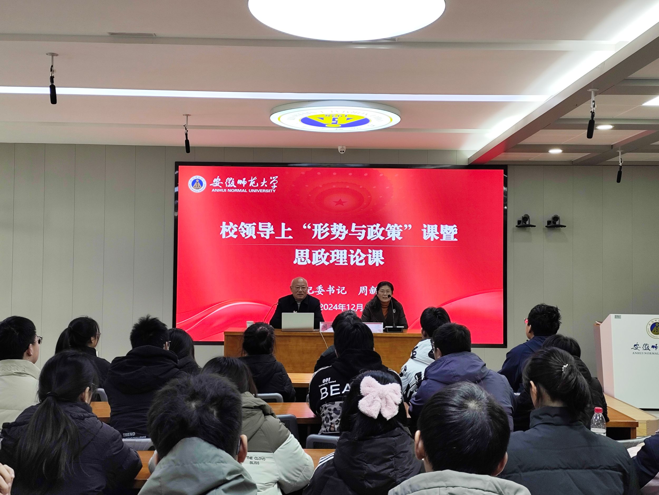 师生讲授“形势与政策”课暨思政理论课。专题课由院党委书记李娟主持。