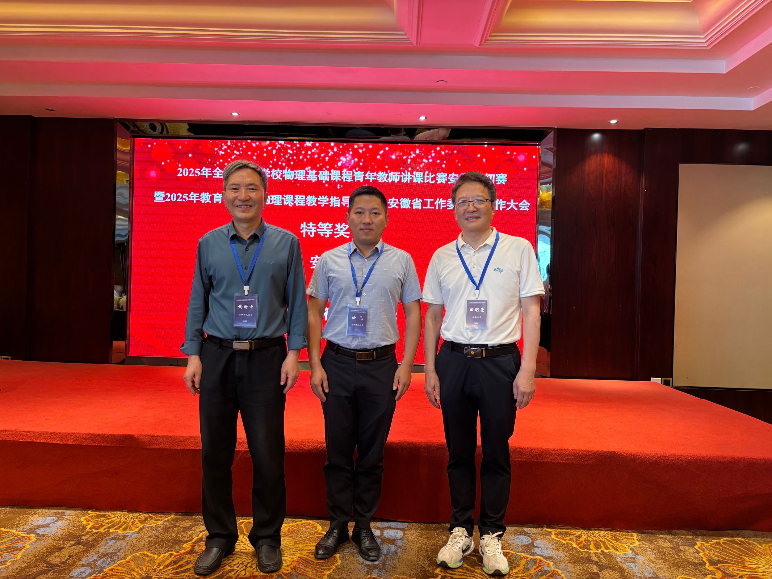 本次比赛由教育部大学物理课程教学指导委员会安徽工作委员会、安徽省物理学会共同主办,安徽大学承办。比赛汇聚了安徽省二十余所高校物理基础课程的优秀青年教师,竞争异常激烈。徐飞老师在备赛过程中,精心设计教学方案,反复打磨教学环节,力求将物理知识以生动、易懂且富有启发性的方式呈现给学生。比赛中,他以扎实的专业知识、严谨的教学态度、灵活多样的教学方法以及富有感染力的教学风格,充分展示了我校青年教师扎实的教学基本功和独特的教学风采,赢得了评委们的一致好评,最终脱颖而出,斩获特等奖第一名。