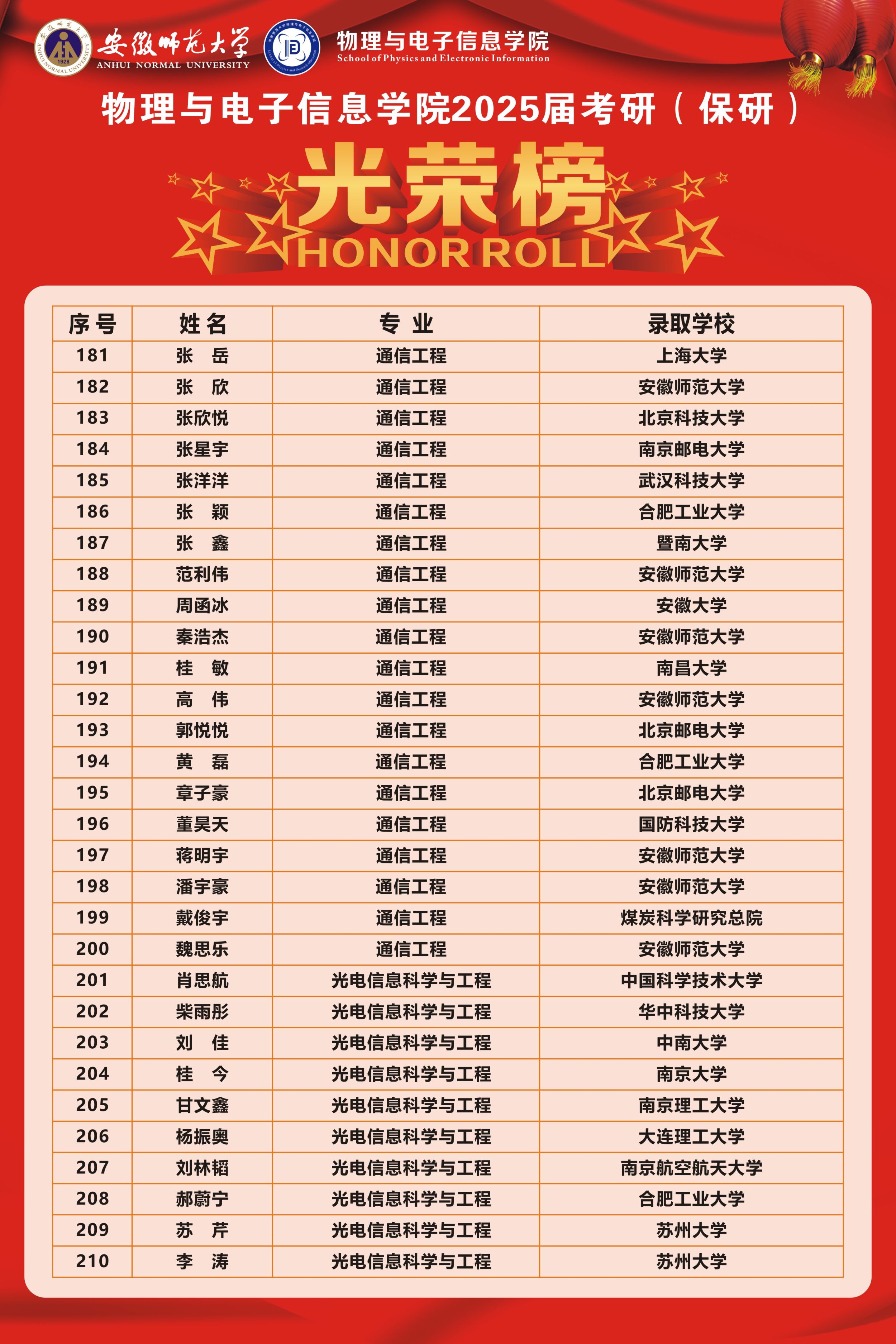 2025届本科毕业生共计566(含优师计划26人)人,继续深造人数达240人,占毕业生总数(不含优师计划)的44.44%,考研率稳步提升。其中237人被国内高校录取,3人被国(境)外知名学校录取。考取“双一流”高校、科研院所、出国(境)和本校人数占升学总人数的92.05%,包括浙江大学、南京大学、中国科学技术大学、华中科技大学、哈尔滨工业大学、四川大学、东南大学、北京师范大学、南开大学、厦门大学、中国农业大学、吉林大学、中南大学、湖南大学、华东师范大学、电子科技大学、重庆大学、东北大学等。