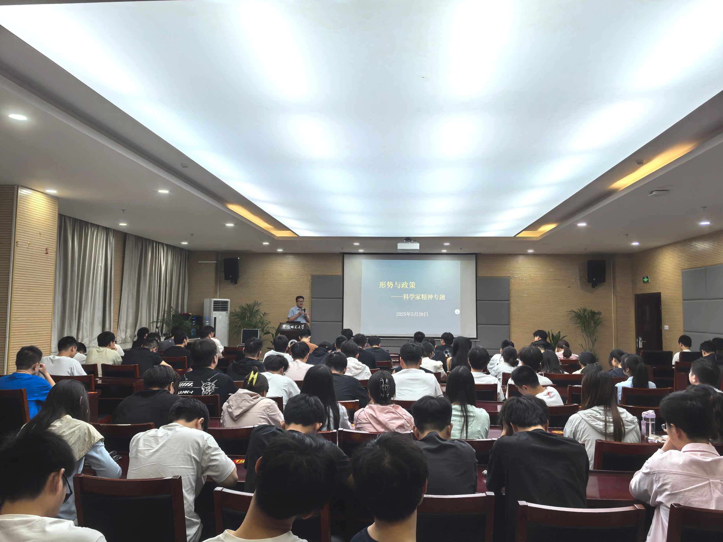 院长吕建平在物理楼304会议室为学院2023级全体研究生讲授了一堂精彩的“弘扬科学家精神”形势与政策课。
