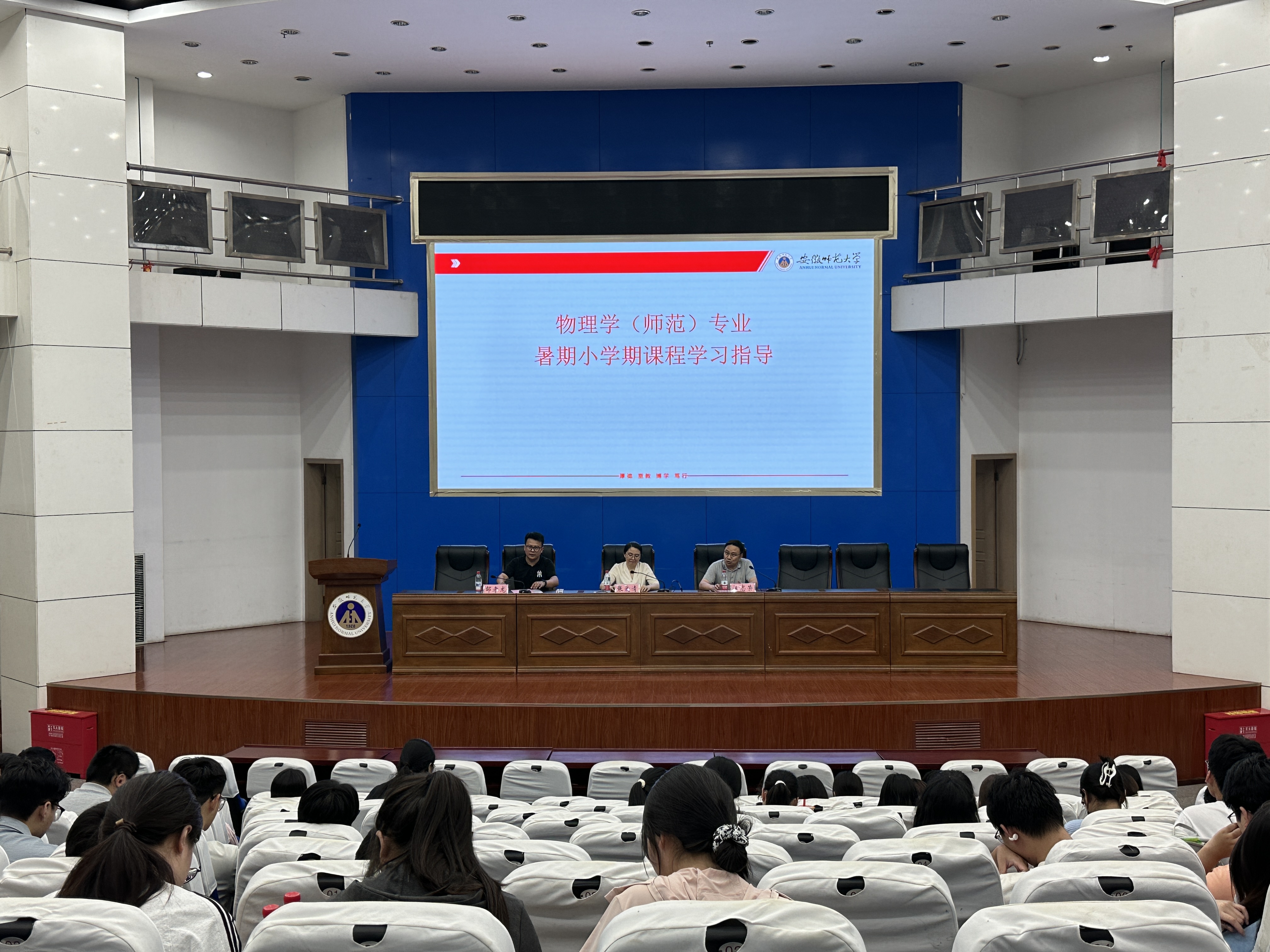 在图书馆敬文报告厅召开2025年暑期小学期学风建设暨安全教育专题会议,教学副院长张爱清、物理系副主任汪志荣出席会议,小学期全体参训学员参会。会议由辅导员邹孝龙主持。