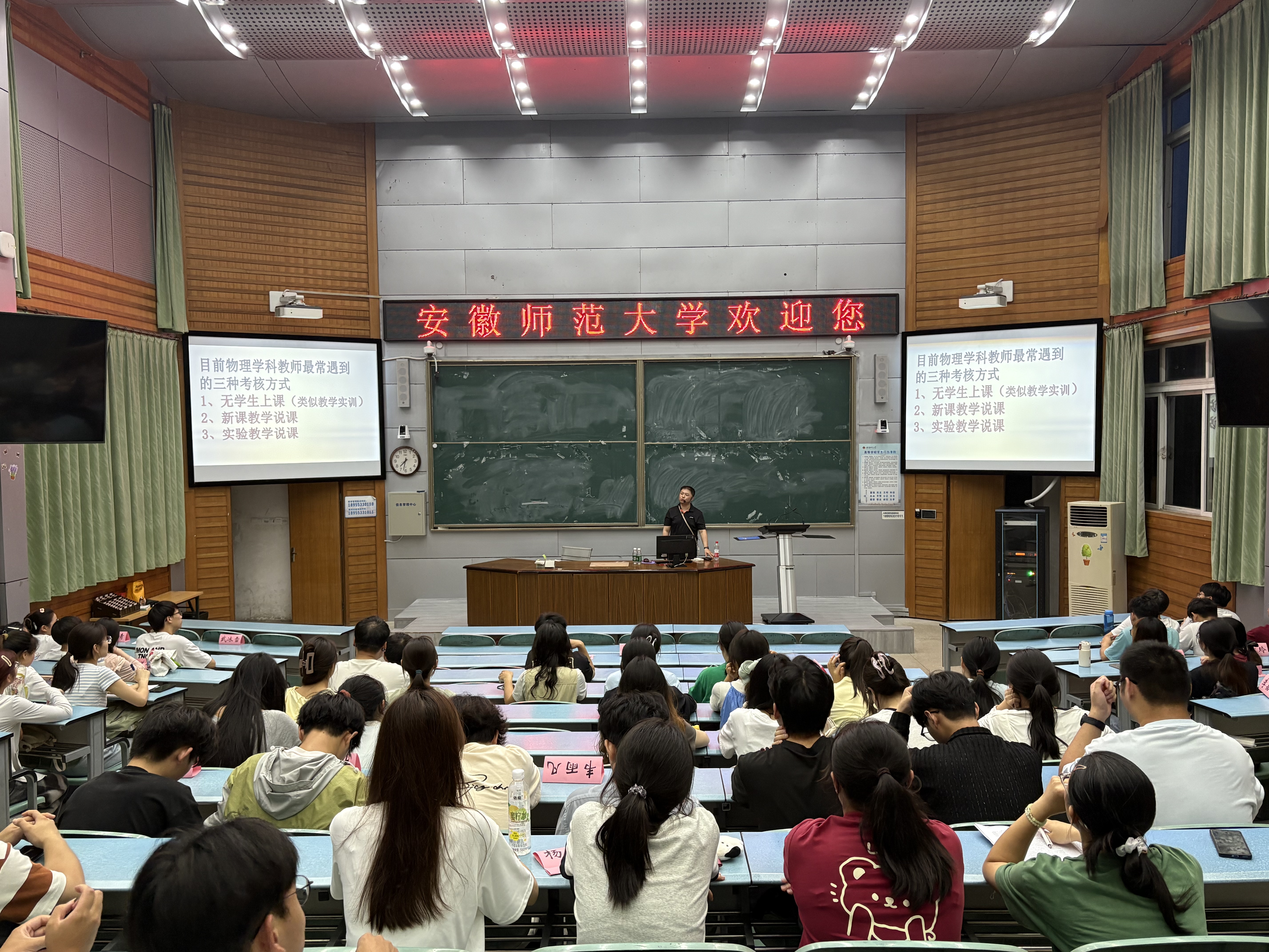 在花津校区2010105教室举办“名师面对面”系列讲座,邀请滁州实验中学校长胡忠国、中国物理奥赛队总教练宋峰、合肥一中淝河校区执行副校长蔡胜国、马鞍山二中物理组教研组长黄浩等老师面向学院全体小学期参训学员作专题辅导报告。