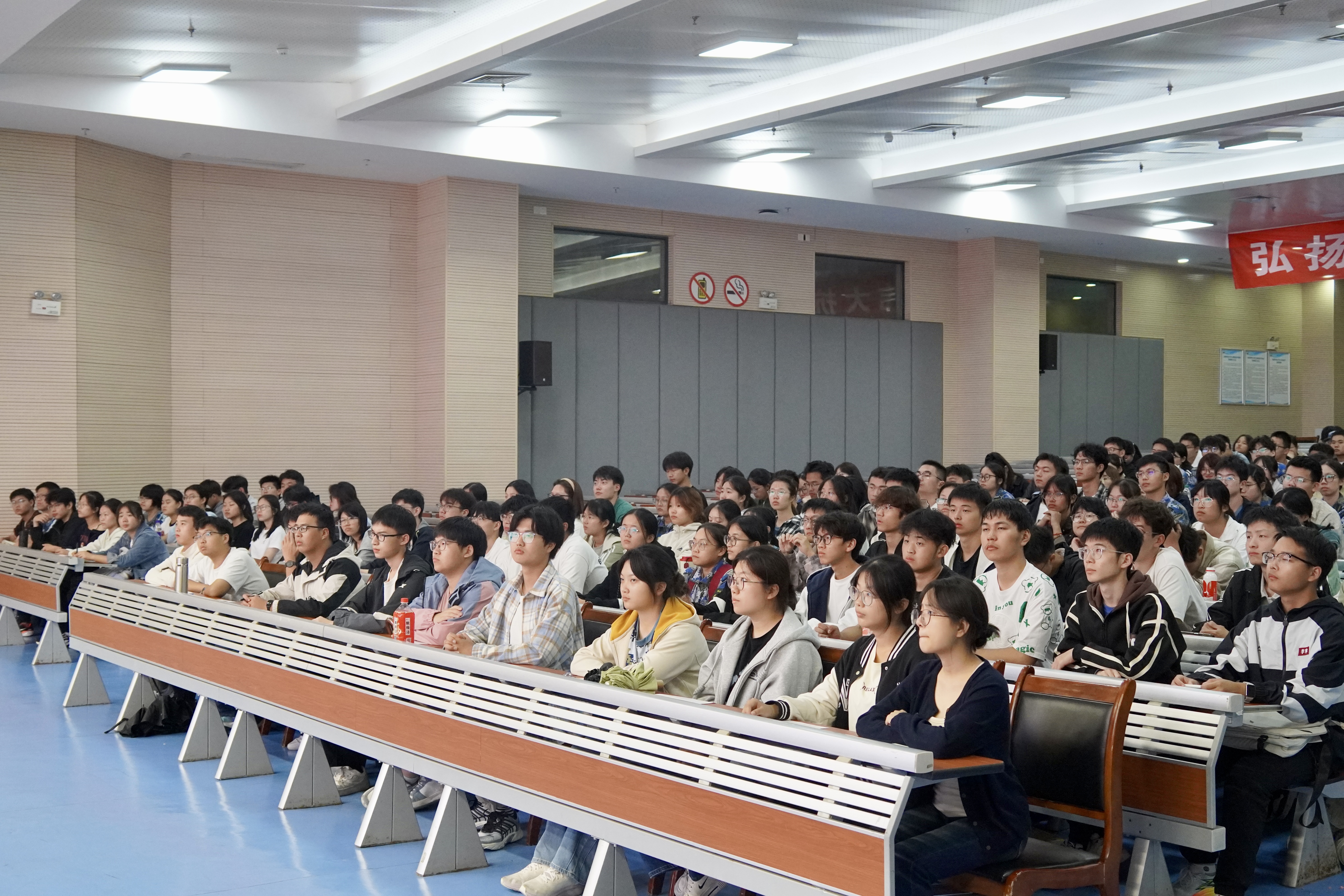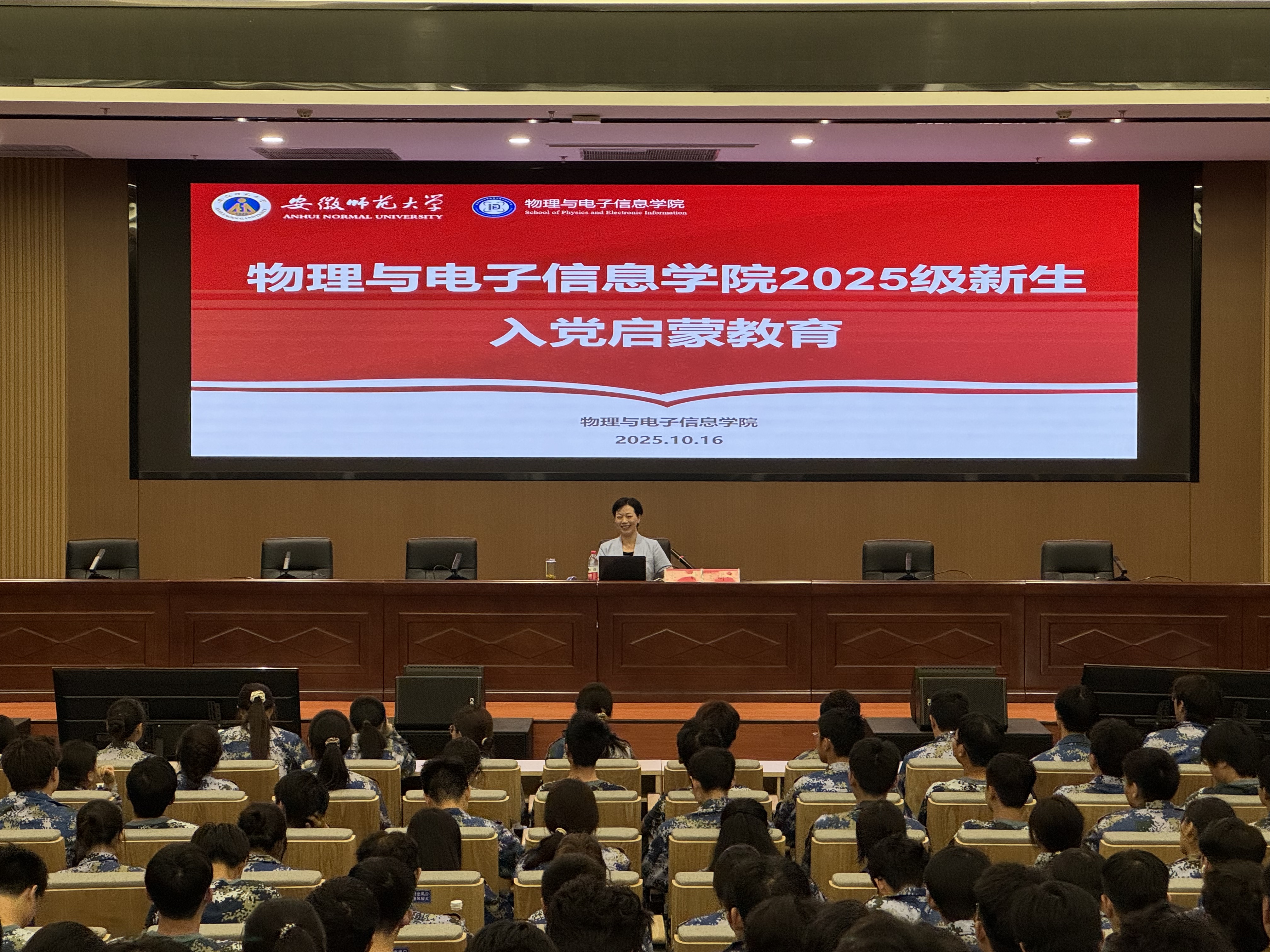 党委在理科大楼报告厅和文典楼西侧报告厅分两场举办2025级新生入党启蒙教育活动。学院2025级全体新生共679人参加。学院党委书记宋静、党委副书记凌从祥分别担任主讲人。