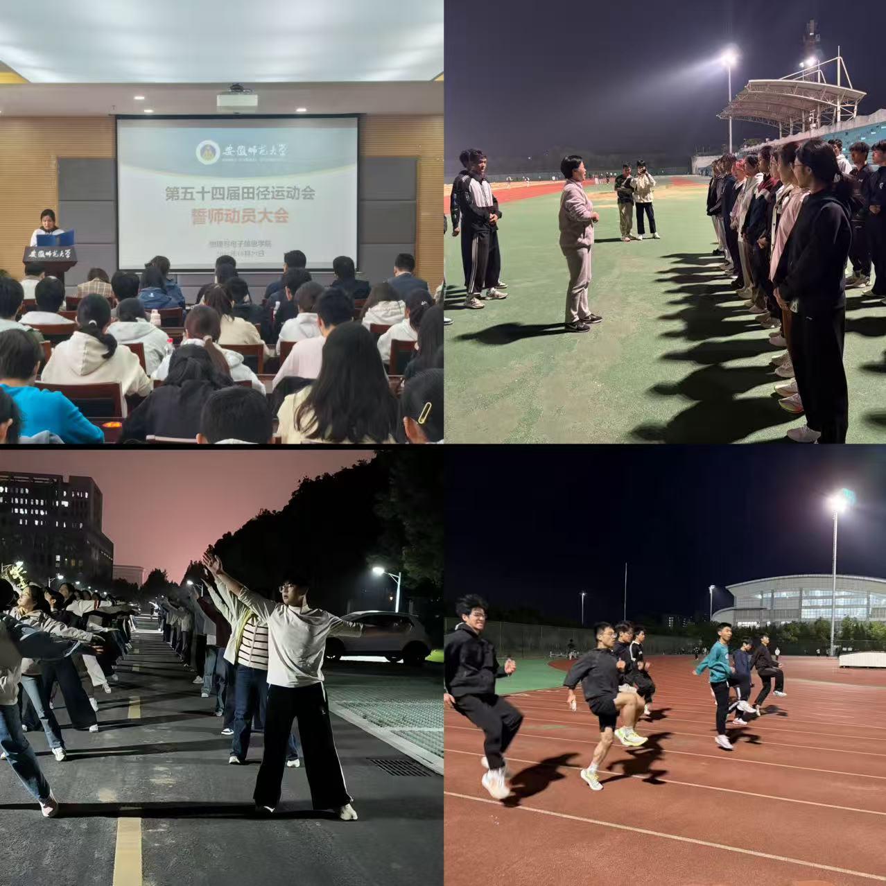 积极筹备,通力合作。学院坚持“五育”并举,高度重视体育运动工作,坚持早谋划、早准备、谋全局、抓细节。学院立足于往届的成功经验,明确分工、协调工作,制定精细的工作方案,扎实推进各项工作。学院领导高度重视,多次亲临训练场慰问运动员、教练员、方阵队、排舞队等,给学生们加油鼓劲,提出指导意见,做好后勤保障。10月29日,学院在物电楼304会议室召开校第54届田径运动会誓师动员大会,会议宣布了参赛运动员名单和学生会服务人员名单,教练员陈颖(体院2023级体育教育专业本科生)和运动员屈兴乐分别作表态发言。院党委副书记凌从祥做赛前动员,指出校运会是高校育人工作的重要载体和抓手,全体运动员和工作人员要做到科学备赛,在认真总结既往经验的基础上要积极谋划、群策群力,开展一系列系统的选拔和训练工作;要做到全力完赛,全体人员要高度重视、提高认识,运动员要遵守赛事规则,赛出水平、赛出风格,顺利完成各项比赛;要做到协同助赛,服务人员要强化后勤保障,做好服务工作。