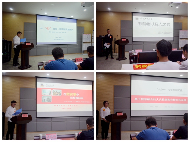 汇报会上,14名选手按照抽签顺序依次上台进行PPT汇报。他们中有暑期积极参加各类国家级、省级学科竞赛,为师大、为学院争得荣誉的竞赛精英;有把阅读当成一种习惯,在书海遨游、汲取养分,提升人文素养的理工科“书霸”;有感恩父母、回报母校,贡献青春力量的孝亲模范;有处处留心、敢想敢为、不轻言放弃的创新达人。六个方面的事迹各有特色,但无不诠释着师大学子自强不息、积极进取、知行合一的优良品质。汇报现场气氛热烈,掌声不断。