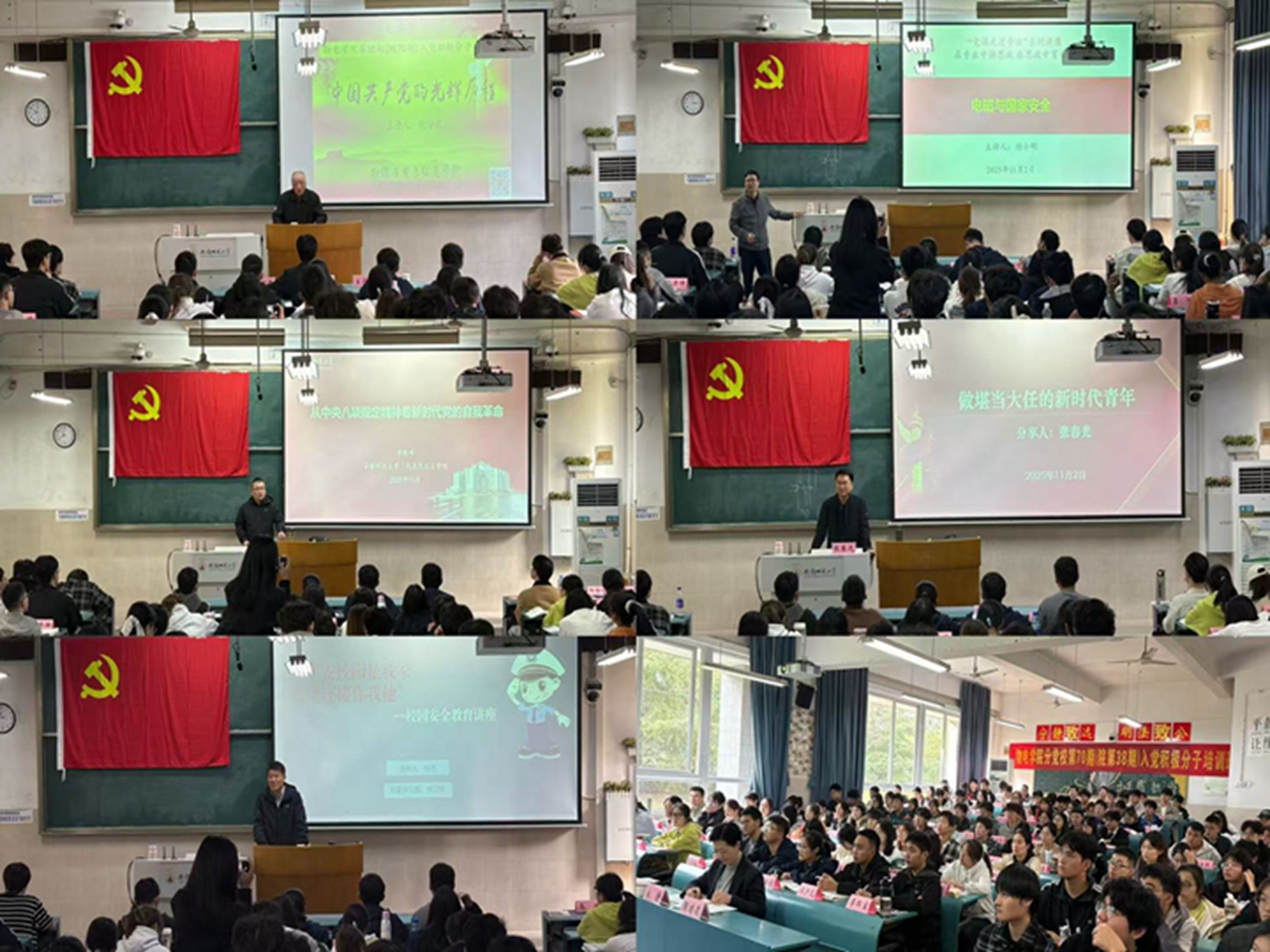 培训期间,为帮助学员更深入地学习和掌握党的理论知识,学院分党校邀请多位专家老师为学员授课。陶绪德作了题为《中国共产党的光辉历程》专题辅导;安徽省优秀教师、电子信息工程专业系主任刘小明讲授了《电磁技术与国家安全》的专题报告;党委保卫部秘书张杰开展了《校园安全教育讲座》;党委宣传部理论教育科科长张春光以《做堪当大任的新时代青年》为题引导学员们争做有理想、敢担当、能吃苦、肯奋斗的时代先锋;马克思主义学院青年教师李俊峰讲授了《从中央八项规定精神看新时代党的自我革命》;邹孝龙就《党的二十大报告学习辅导百问》开展辅导。