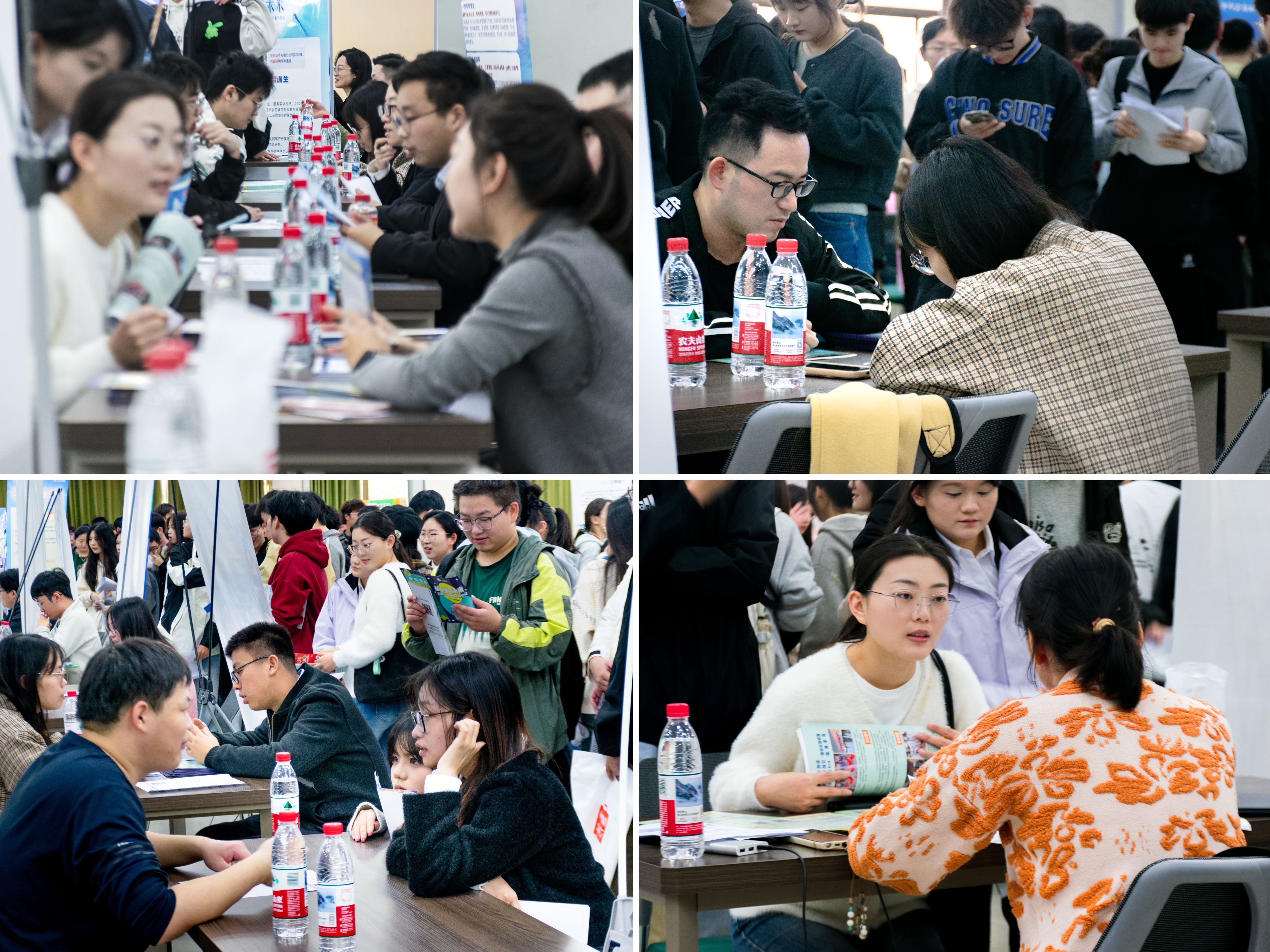 招聘会现场气氛热烈,许多展位前排起了长队,毕业生们手持精心准备的简历,积极与心仪单位交流,主动了解岗位详情、发展前景及薪资待遇。招聘会后,多家用人单位在校组织了笔试、面试考核。2022级物理学(师范)专业梁少聪同学表示“一站式的招聘流程为毕业生开辟了求职的快速通道,免去了漫长的等待,极大地提升了求职效率与体验”。