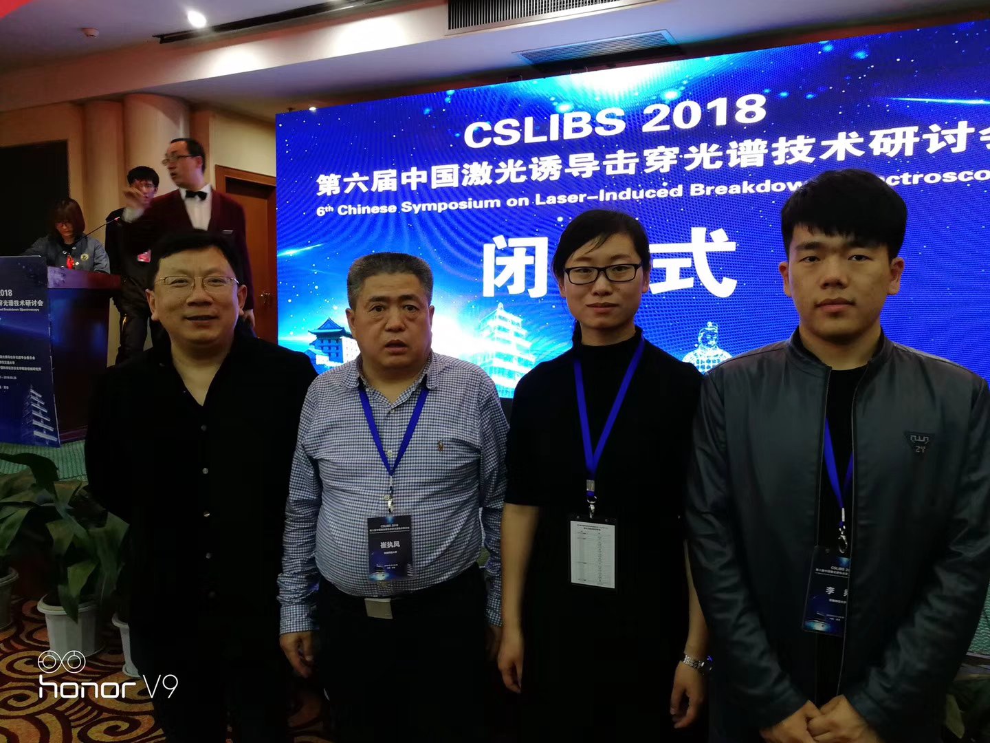 院长崔执凤教授、杨新艳博士、姚关心副教授、李乘同学参加了该次会议。崔执凤教授、杨新艳博士应邀在大会作了报告。崔执凤教授在大会上作了题为“液相基质中重金属元素激光诱导击穿光谱特性”的报告,从激光等离子体产生条件、激光等离子体局部热平衡和自吸收不存在条件的验证以及如何验证实验数据的可靠性等方面全面深入阐述,并就如何正确应用LIBS技术,发表了自己的观点和建议,引起了与会学者的高度关注与探讨。杨新艳博士也作了题为“表面增强激光诱导击穿光谱中金属衬底的作用机理的研究”的口头报告,指出将待测液体滴在金属衬底表面,实现待测样由液相到固相的转化,使得光谱检测限得到极大的提高,该新颖的实验方法得到与会者的广泛关注。大会期间,激光诱导击穿光谱专业委员会决定第七届中国激光诱导击穿光谱技术研讨会将于2019年3月底在包子漫画
