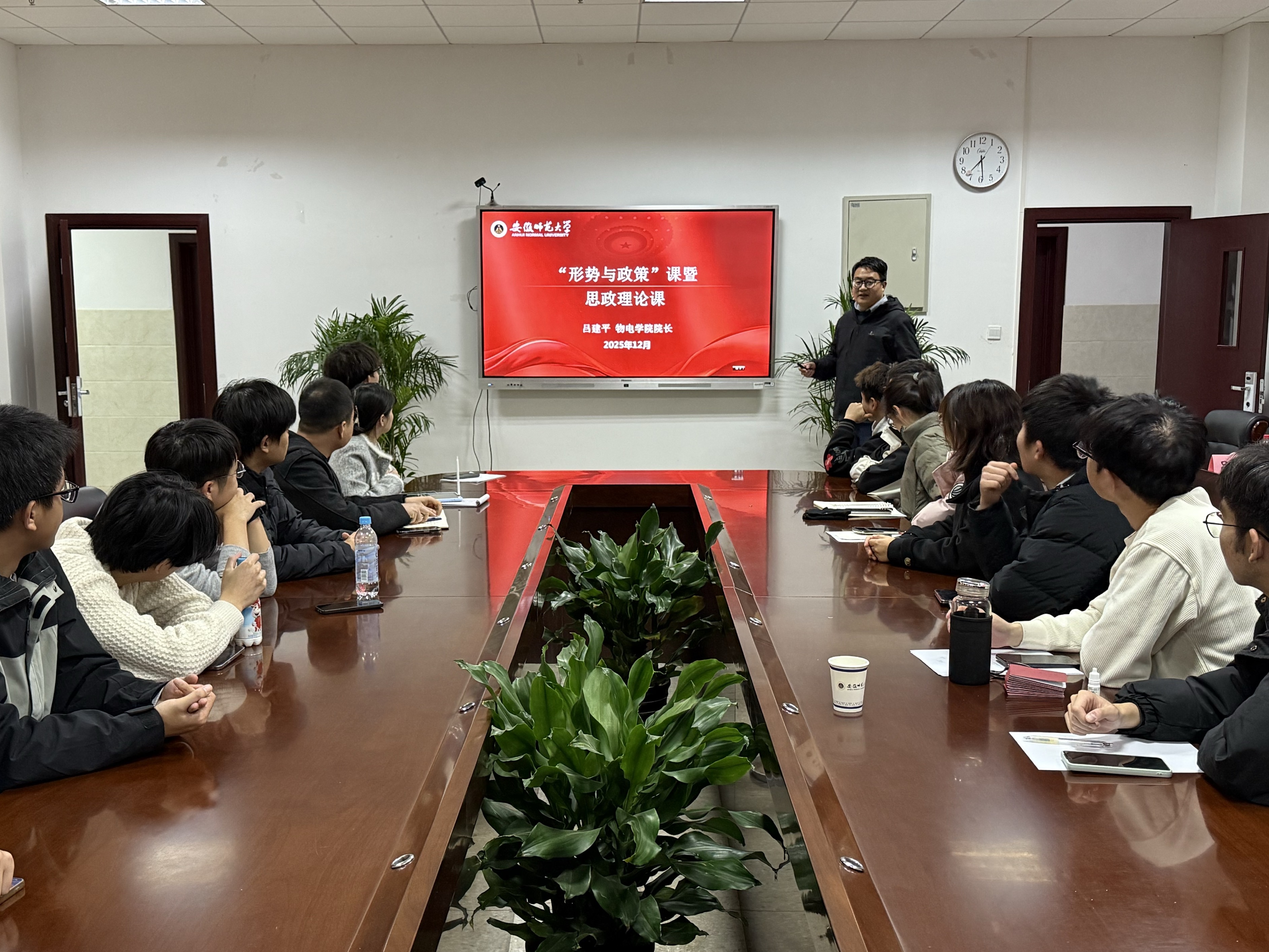 党委副书记、院长吕建平在物理楼308会议室为学院研究生第四党支部讲授“形势与政策”课暨思想理论课,带领学生党员集中学习党的二十届四中全会精神。课程由支部书记朱骞主持,支部全体党员参加会议。