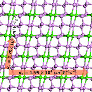 最近,课题组从理论上预测和设计了一种可从体相剥离的基于第五主族元素的新型二维结构CaP3,发现其具有1.15 eV的直接带隙和各向异性的高达20000 cm2/Vs的电子迁移率,理论计算表明其在可见光范围内具有良好的光吸收,在未来的纳米电子学和光电子学具有潜在的应用。