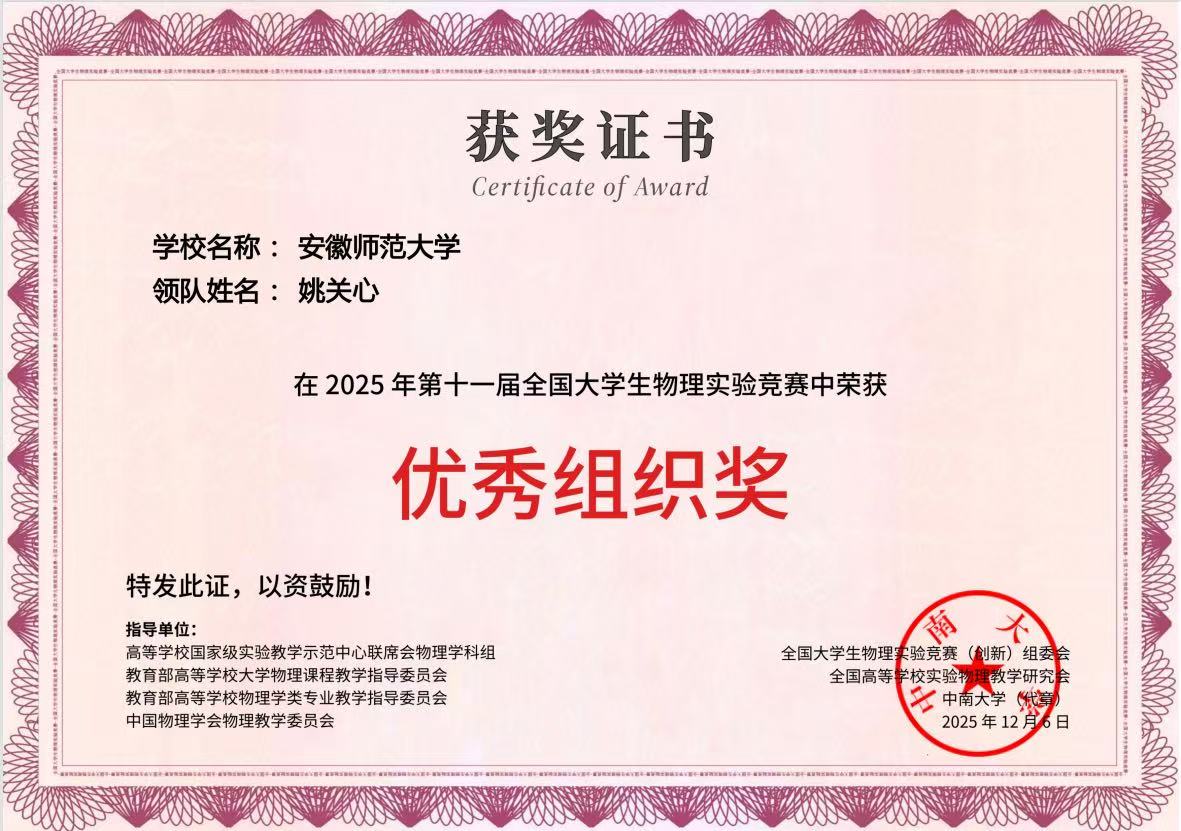 一贯高度重视本科生创新能力培养,此次竞赛取得的优异成绩,是对学院创新人才培养模式的成功检验,也是学校持续深化实验教学改革、有效提高物理教学质量的重要体现。