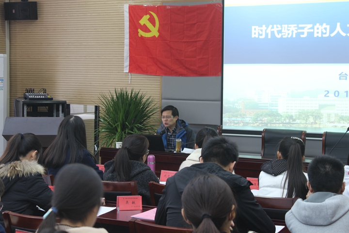 分党校/学生会)11月19日上午,校学生处处长台启权在理化大楼304讲授《时代骄子的人文情怀与责任担当》,学院党员培训班学员、团学骨干培训班学员共同学习,讲座由党校培训班米佳佳主持。
