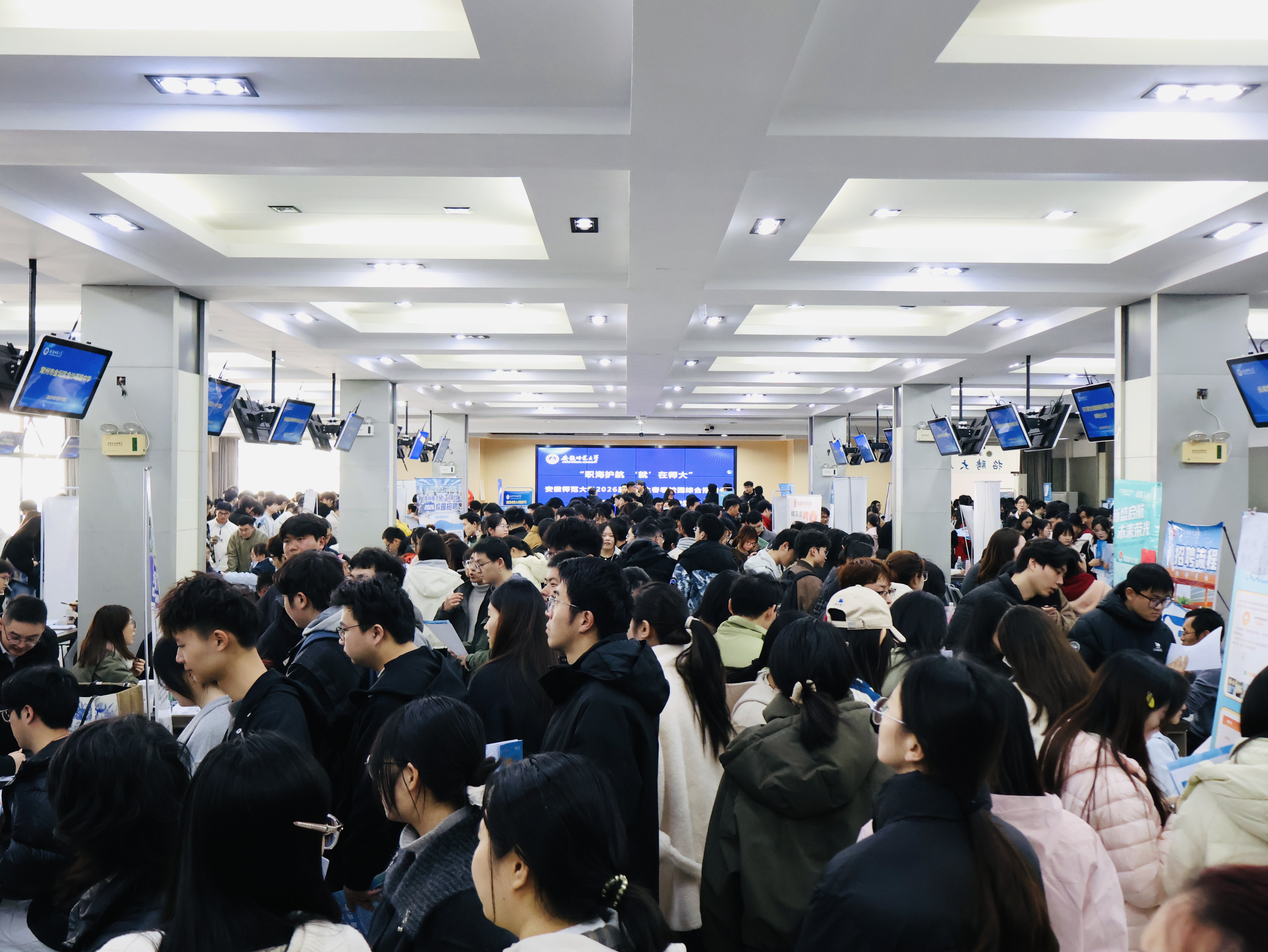 毕业班辅导员全程驻守招聘现场,主动靠前提供服务,悉心指导毕业生优化个人简历、精准匹配岗位,耐心解答求职过程中的各类疑问。参会毕业生踊跃参与,主动与用人单位沟通交流,现场洽谈氛围热烈、秩序井然。招聘会还特设就业咨询专区,为同学们提供职业规划、就业政策解读等一站式服务,切实提升就业帮扶实效。