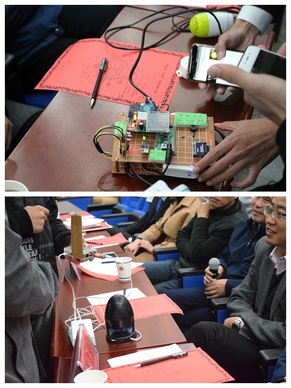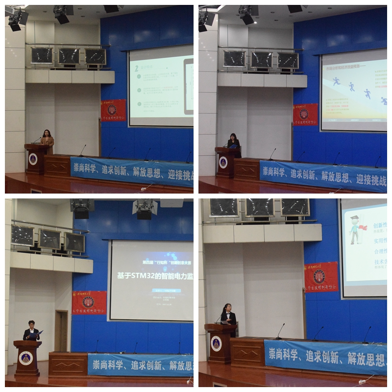 候逸铭团队的基于STM32的智能电表的小型化、低成本和“物联网+”三大亮点吸引了评委老师的关注,外国语学院徐婧团队的“静电扫发仪”以新颖的想法及细致生动的讲解紧紧吸引观众们的眼球。汇报环节中,选手们的出色表现及评委老师们的精彩点评多次赢得全场观众的热烈掌声。