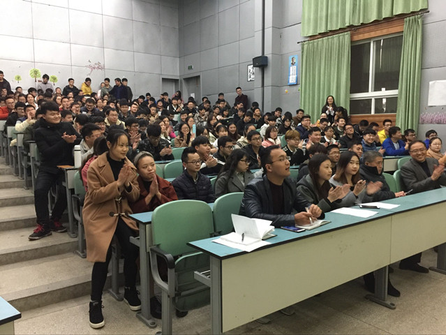 在一号教学楼105教室召开了2018届毕业生考研慰问暨考前再动员大会。院长崔执凤、党委书记李娟、党委副书记吴长义、毕业班辅导员及2018届考研学子300余人参加了此次大会。会议由李娟主持。