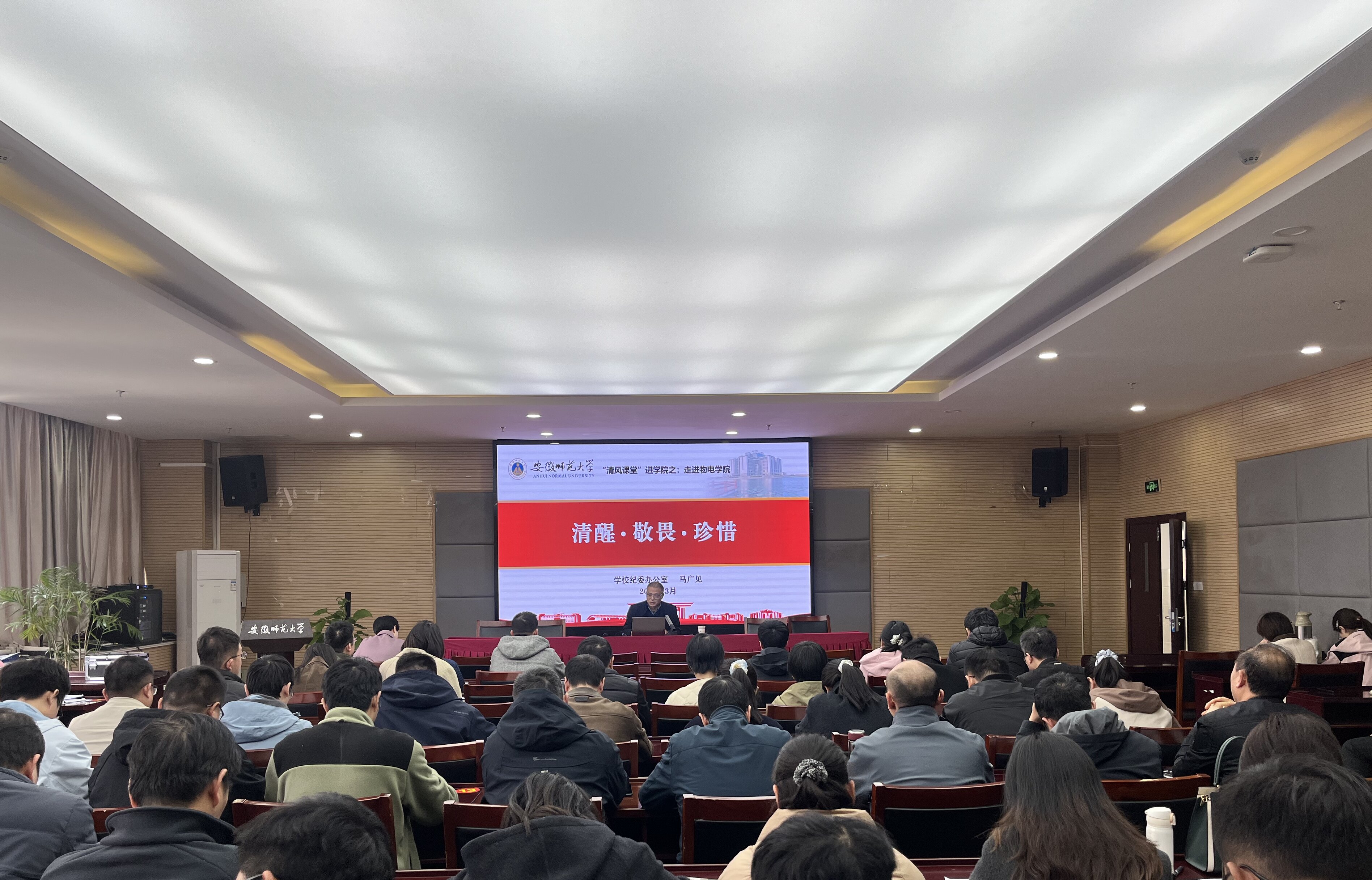 召开教职工大会,开展师德师风警示教育。校纪委副书记、纪委办主任马广见应邀作题为《清醒 敬畏 珍惜》的专题辅导讲座。讲座由学院党委书记宋静主持。