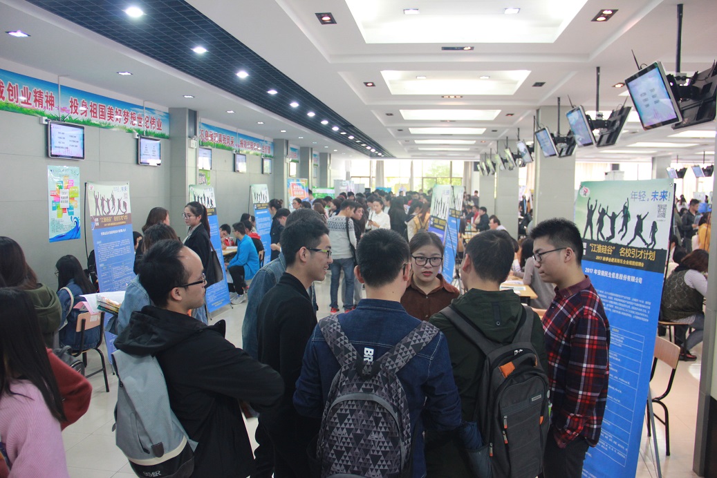 牵头邀请,合肥高新区人社局组织70家企业来我校选聘毕业生,为学生带来就业岗位2500余个。招聘会在招聘大厅进行,吸引近700名毕业生前往应聘。