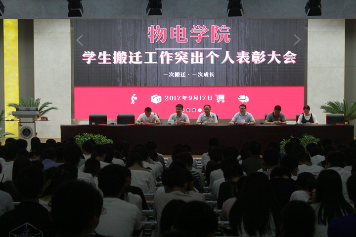 为表彰学院在学生搬迁工作中的突出人物,激励大学生培养乐于助人的奉献精神,9月17日下午,学院学生搬迁工作突出个人表彰大会在理化大楼报告厅顺利举行。院党委副书记吴长义、本科和研究生辅导员以及各年级学生代表和突出个人代表参加了此次会议。大会由16级辅导员秦瑾琼主持。