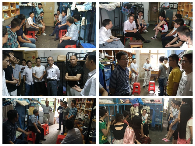 6月24日晚,学院党政领导、各专业负责人及教师代表深入各专业宿舍内,与同学们开展座谈。领导老师们询问同学们的近况和今后的打算,了解同学们对学院工作的建议和意见,宿舍内不时传来阵阵笑声,大家与老师合影、道别,感谢学院的培养与教育。