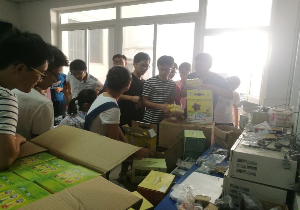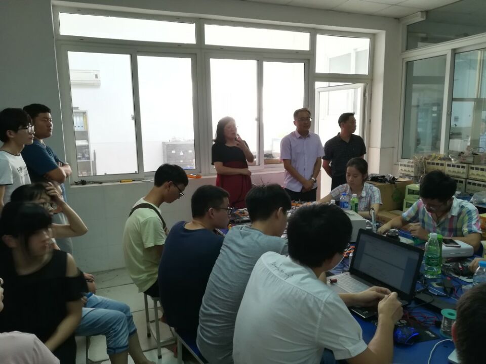 领导班子在辅导员的陪同下,前往金工实训中心走访了电子设计大赛的集训现场,看望并慰问了暑期留校准备比赛的同学和老师,并为其送上了牛奶、饼干等慰问品。