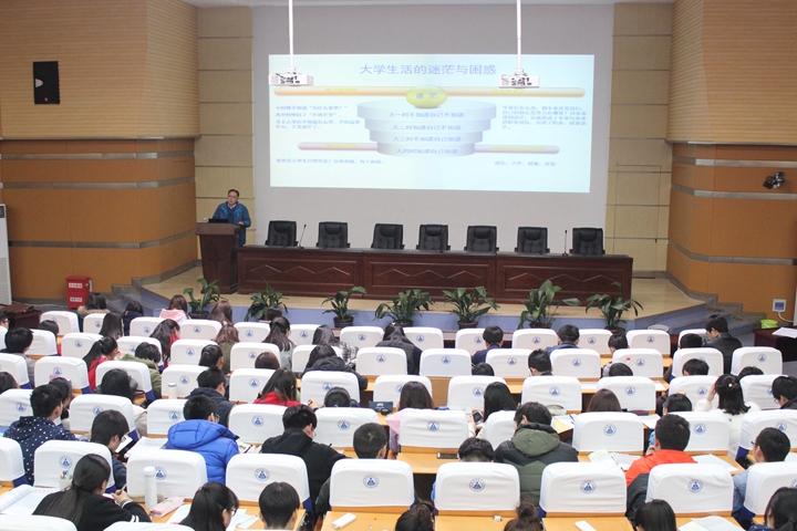 党委副书记吴长义在赭山校区科技小礼堂举行“谁的青春不迷茫”专题报告会。报告由学院团委副书记米佳佳主持,全体2015级近400名学生共同聆听了报告会。