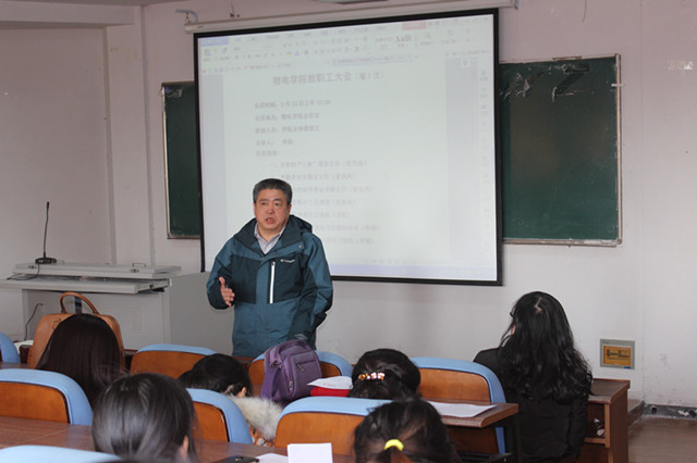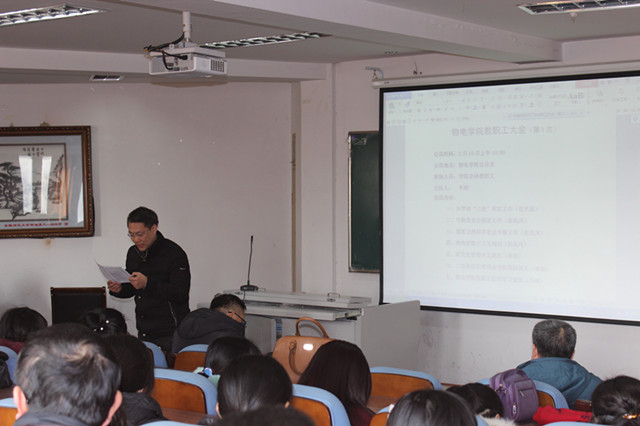 在行政楼三楼大会议室召开了2017年第一次教职工大会,学院全体教职工参加了会议,会议由院党委书记李娟主持。