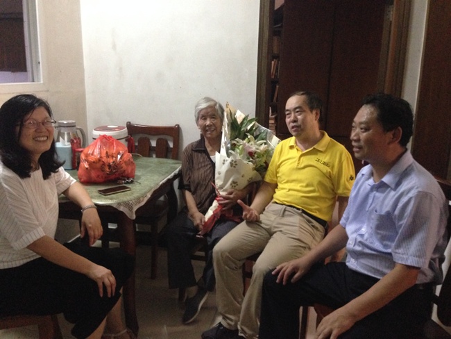 陆同兴、严建生、沈锡生、江林森、翟林桦、岳文郁6位退休老教师,为他们送上鲜花和慰问品,向他们致以节日的问候。