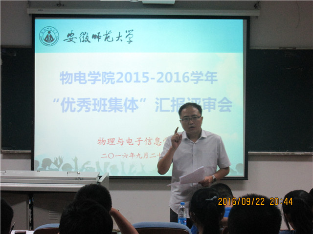 2015-2016学年“优秀班集体”评审汇报会在在综合楼三楼报告举,院党委副书记吴长义、全体辅导员出席评审会并担任评委,各班级学生代表100余人观摩了现场汇报会。