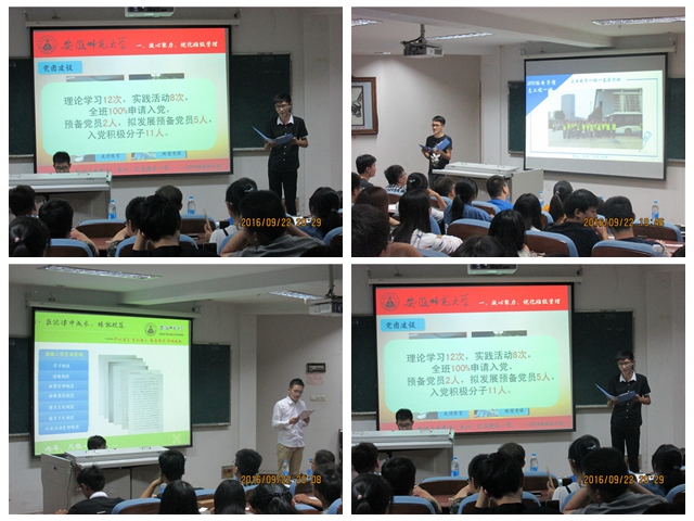 度重视学生班集体的建设,通过“以评促建、评建结合、重在建设”的“优秀班集体”评选会,抓实班风学风建设,进一步推进大学生“自我服务、自我管理、自我教育”的正面引导,营造出积极进取、奋发拼搏、创先争优的良好氛围。