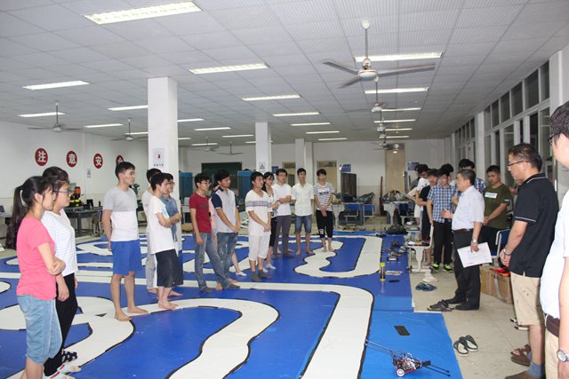 在训练场地,李娟和崔执凤与师生们亲切交谈,详细询问他们学习、工作、生活中的困难,认真听取他们的想法和建议。听完师生们的介绍后,崔执凤说,感谢老师们的辛勤付出,希望同学们抓住机会,刻苦奋战,参加智能车竞赛对培养学生的思维能力、解决实际问题能力和协作能力都具有重要的意义,通过这次实际解决问题的训练能够获得书本上所得不到的知识。并对于即将到来的省赛,勉励全体学生在最后的时刻,更要细心谨慎,做好竞赛前的最终冲刺,祝愿同学们付出有所获。吴长义叮嘱同学们要合理安排假期生活,在参加竞赛集训的同时,一定要注重饮食卫生、劳逸结合,经常与家长和老师保持联系,注意消暑纳凉和调整作息时间,尤其是在目前芜湖汛期期间注意安全,确保留校期间人身和财物安全,以良好的状态在学校度过一个充实而欢乐的暑假生活。