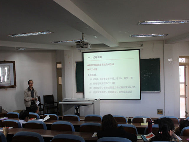 )为更好的完成期末试卷命题评卷与分析工作,学院于5月11日在综合楼三楼举办了培训会议。邀请了学院教学督导王元航老师作主题报告,会议由副院长崔光磊主持。