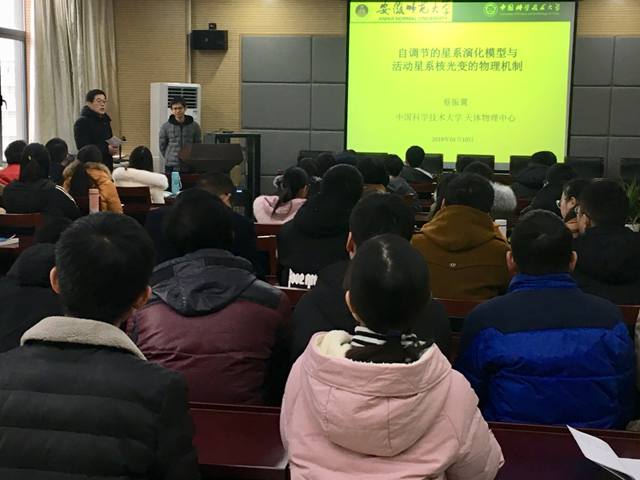 在本次报告中,蔡振翼副研究员首先从星系形成与演化、活动星系核、温度涨落模型三个方面展示了天体物理的魅力;随后,重点介绍了近期的工作进展,包括提出了椭圆星系形成的另一种可能:星系和其中心的活动星系核自调节的共同演化;以及根据Planck组宇宙微波背景辐射的理论分析了不同波段的光变曲线;最后,蔡振翼副研究员与大家分享了对未来工作的展望并鼓励大家善于将所学的东西联系起来,以此提高大家的科研探索能力与思考能力。讲座结束后,与会的各位老师和同学就自己关心的问题与蔡振翼副研究员展开深入交流与讨论。