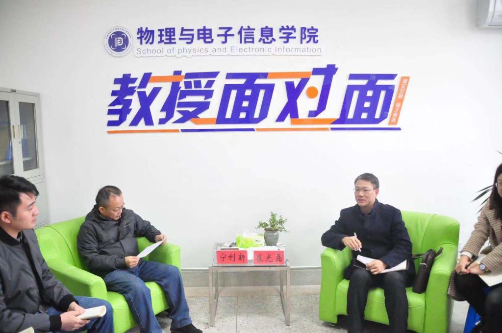 11月27日下午,学院“教授面对面”第一期拉开帷幕。校教务处副处长、教授、博导崔光磊,院分管科研副院长,教授、博导宁利新与11名来自不同年级的物理学专业的学生座谈交流。两位教授结合自身求学和工作经历,围绕同学们提出的“考研如何择业择师、如何才能学好三大力学和高数等课程、如何做好生涯规划、如何提升师范生技能、如何处理好学习与工作的关系”等问题开展了精准辅导和深度交流。近三个小时的热烈互动交流为学生打开了成长心结,受到了师生一致好评。正如崔光磊老师所说“在深度交流中让学生学会学、互相学、思考学;在精准对话中让学生学知识、学方法、学做人。”