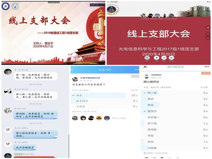线上团日强意识。学院28个团支部全部完成团支部组织生活会暨团员教育评议工作。围绕“青春心向党·团员勇担当”这一主题,学院团委委员对接指导各团支部,组织团员学习习近平总书记2月23日《在统筹推进新冠肺炎疫情防控和经济社会发展工作部署会议上的讲话》,按照“三会两制一课”规定开展团员年度教育评议。据统计,学院共评出优秀团员543名,合格团员1333名,团支部满意率和团员合格率均为100%。