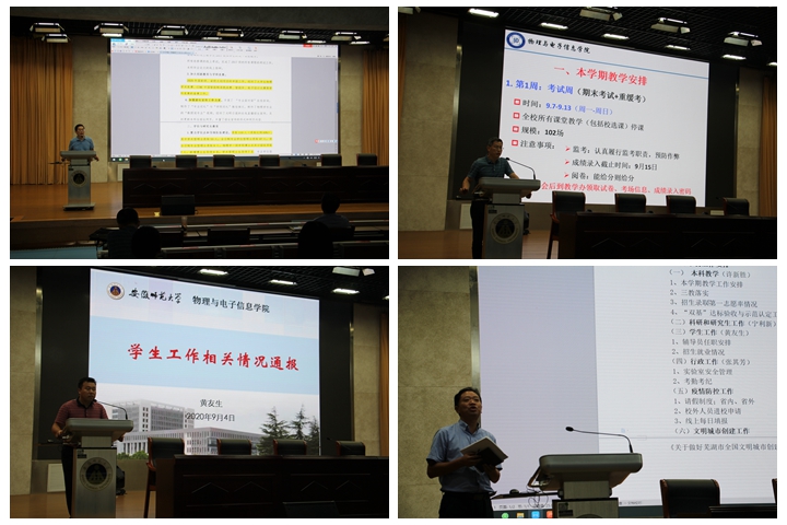 专题教育结束后,院长郑贤锋对假期重点工作进行了全面总结,对本学期的重点工作进行了强调,对开学期工作进行了总体部署。副院长许新胜对本学期教学工作安排、三教落实、招生录取情况、“双基”达标验收与示范认定工作进行了布置;副院长宁利新提醒了科研和研究生相关工作;院党委副书记黄友生通报了辅导员任职安排和招生就业情况;副院长张其芳强调了实验室安全管理和考勤考纪。