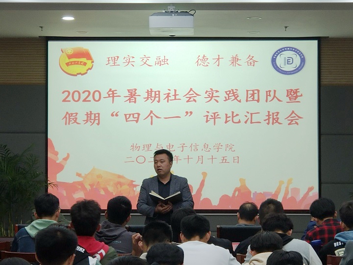以“小我融入大我,青春献给祖国、决战脱贫攻坚,投身强国伟业”为主题,以“一假一技能,一期一成长”为目标,严格按照“落实云指导、教师进团队、对象全覆盖”的工作要求开展了暑期社会实践工作。据统计,学院假期“四个一”共参与1325人,实现了本科生全覆盖;共组建线上线下实践团队45支,其中国家级团队1支、校级重点团队2支、院级重点团队11支。