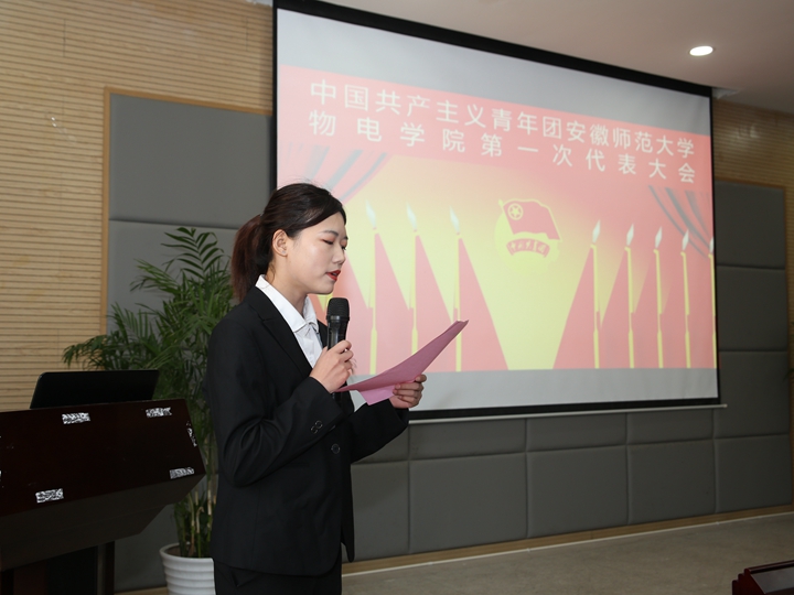 第一次代表大会在物理楼304报告厅隆重举行。学院党委书记李娟、党委副书记黄友生、团代会全体代表、列席代表出席大会。大会开幕式由学院团委书记宋凤楼主持。
