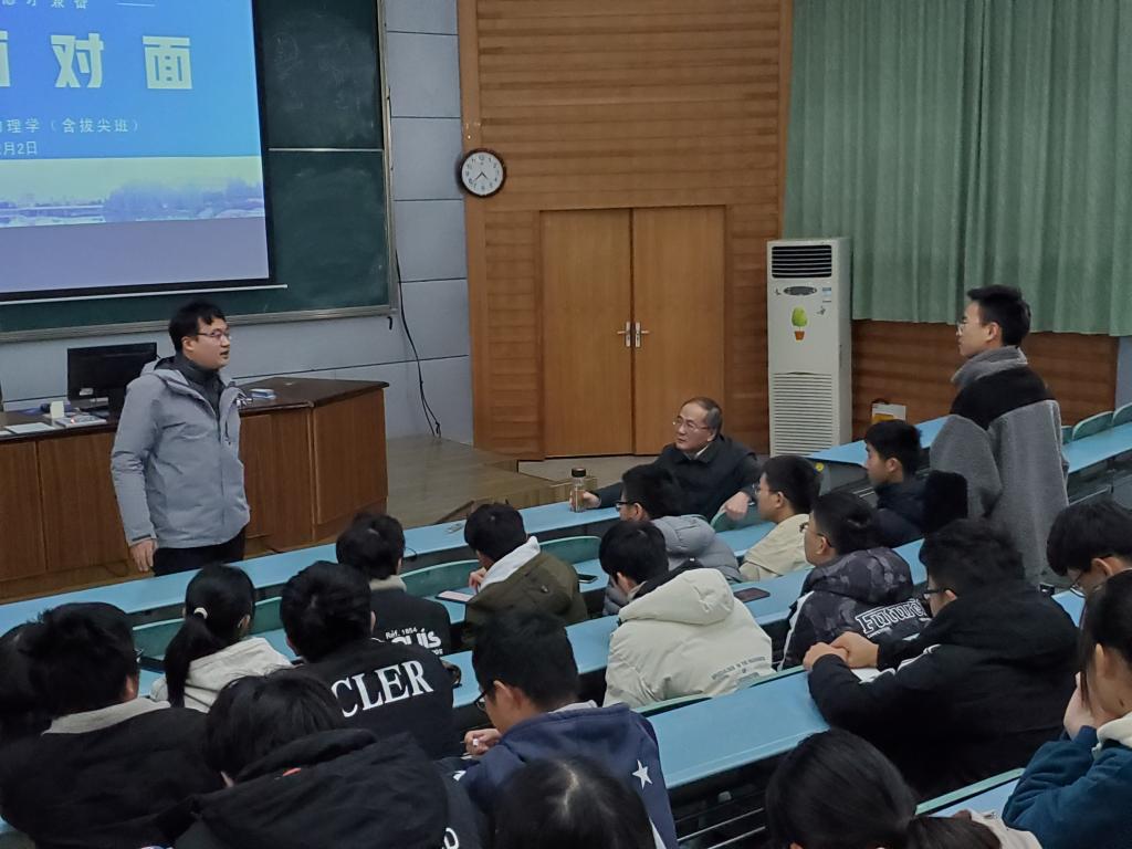 吕建平老师以大学生涯错误安排的危害为例,强调了大学生涯中“自律”对于学生而言的重要性,随后他向同学们介绍了学校、学院与物理学专业的发展,希望同学们立足学校、专业,树立自豪感,志存高远,奋发努力。他从学会独立生活、调整好读书姿态、夯实专业学习、专业阅读、读书方法、珍惜时间等方面为同学们做了具体细致的指导。