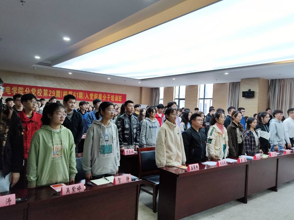 伴随着嘹亮的国歌,开班大会拉开序幕。李娟在致辞中首先代表学院党委向参加此次培训班的全体学员表示欢迎和祝贺,并对本次培训学员提出三点希望与要求:一是切实认识到入党积极分子培训班的重要性。二是倍加珍惜党校学习的机会;三是切实保证本次培训班学习效果,上课认真听并学习运用实践。学员代表18自动化苏阳东代表发言,鼓励大家不忘初心,严于律己,扬帆远航。会上,李娟和黄友生为培训班学员代表发放《先锋》学习手册。