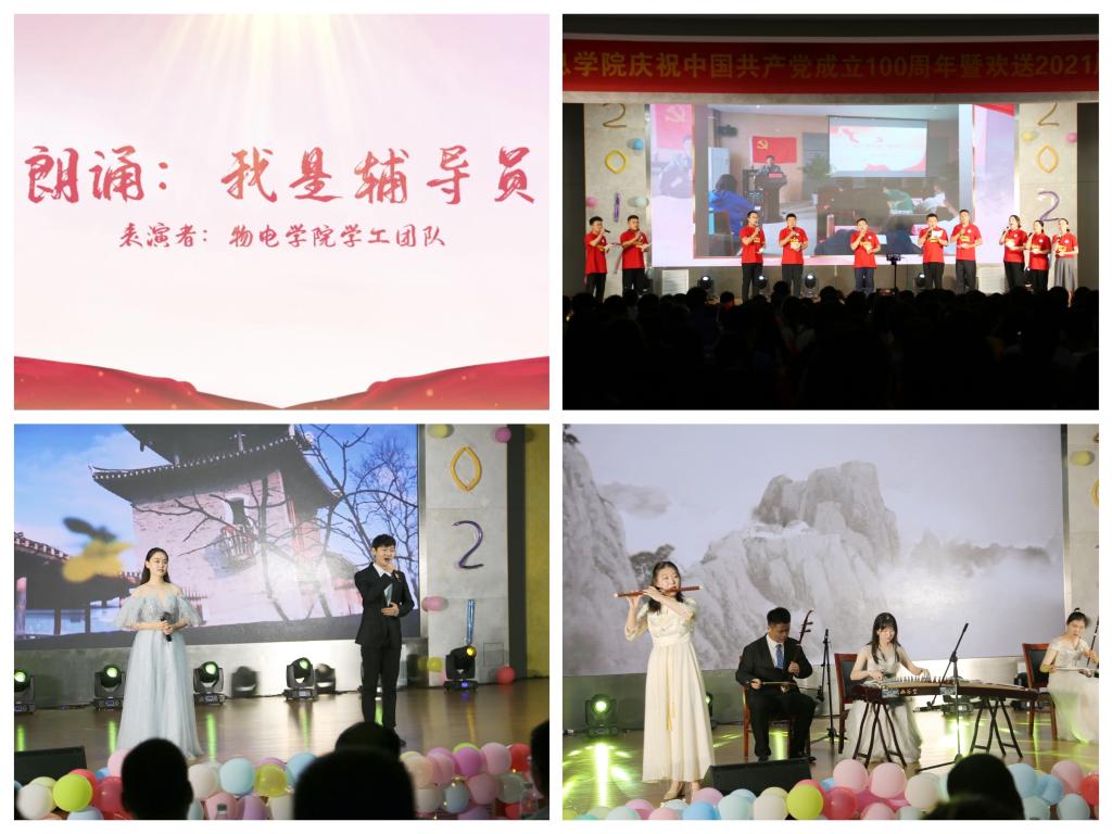 【新使命,勇于担当】生逢其时,重任在肩。乐器弹奏《忘记时间》在悠扬的旋律中感受时光的短暂,透过弦音聆听诚挚祝福。院学工团队深情朗诵原创作品《我是辅导员》,用真挚的话语展现了学院学工团队为党育人为国育才、围绕学生关照学生服务学生的追求与信念。红日升在东方,其大道满霞光,一首《万疆》用婉转动听的音律为祖国建党一百周年献礼,流淌着浓浓的爱国情怀。