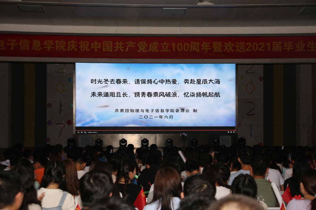 几载风雨同舟,携手奋进拼搏。VCR《放心去飞》情谊浓浓,温情满满。它记录着2021届毕业生们在师大、在物电难忘的青春,从四年前与师大初次相遇,在校园中既经历过渴望的期盼、追求的辛勤,也有成功的欢笑,感动的泪水;更承载了来自五湖四海、相遇同一片蓝天的同窗情,春风化雨诲人不倦的恩师情,心系母校爱校荣校的师大情。离别之际,老师们送上了毕业祝福和殷殷期盼。学院党委书记李娟寄语中说道:“希望2021届全体毕业生们,在今后的人生道路上谨记‘理事交融,德才兼备’的院训,在真学实干中成就一番事业”。