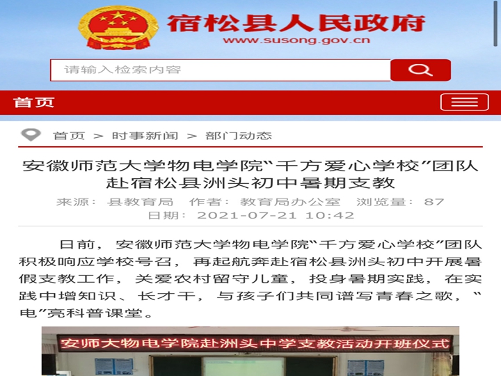 本网讯(千方爱心学校赴洲头中学支教团队)7月13日上午,包子漫画 包子漫画 “千方爱心学校”赴宿松县洲头初中2021年暑期社会实践活动再起航。