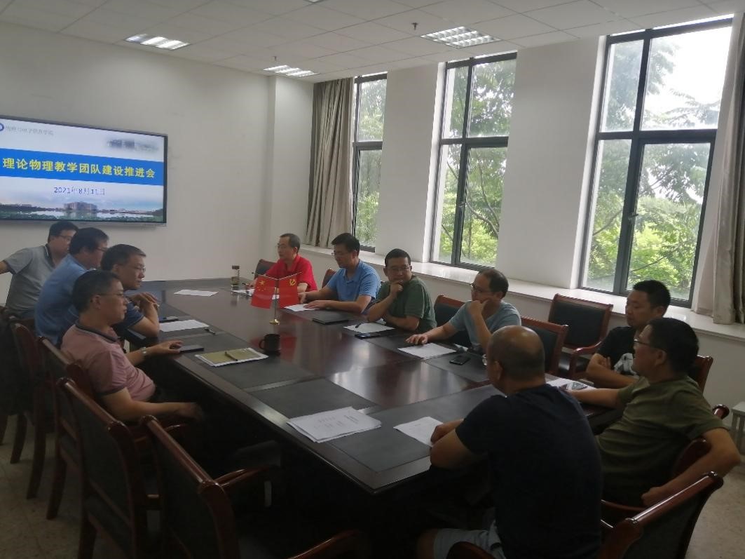 省级理论物理教学团队建设推进会在物理楼209会议室举行。校教务处副处长崔光磊、科研处副处长、教学团队负责人许新胜、物理专业负责人吕建平、物理实验中心主任张先燚、理论与计算物理教研室教师以及教学团队成员代表参加了本次会议。会议由教研室负责人张季谦主持。