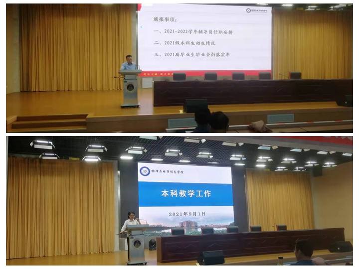 院长郑贤锋回顾了暑期学院教学、科研、学团相关工作,梳理了本学期开学初重点工作。学院领导黄友生、张其芳、宁利新、张爱清分别部署了新学期学团、实验室与行政、科研和研究生、本科教学等相关工作。